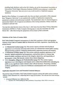He further referenced a letter allegedly issued by the Ghana Tertiary Education Commission (GTEC) directing Mr. Tanko-Computer to stop using the title “Doctor” after its own review found irregularities in his PhD credentials.